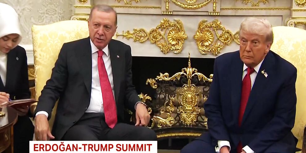 Cumhurbaşkanı Recep Tayyip Erdoğan, ABD Başkanı Donald Trump'ın davetiyle Beyaz Saray'a gitti. Erdoğan, 2019 yılından bu yana Beyaz Saray'a ilk kez gidiyor. Erdoğan'ın 6 yıl sonraki ilk ziyareti, ABD Başkanı Trump'ın 20 Ocak'ta yemin ederek göreve başlamasından 8 ay sonra gerçekleşiyor. Cumhurbaşkanı, önceki ABD Başkanı Joe Biden döneminde Beyaz Saray'a hiç ziyarette bulunmamıştı. İki lider Trump’ın ilk başkanlık döneminde, 2017 ve 2019 yılında Beyaz Saray’da iki kez görüşmüştü. Erdoğan'ın Beyaz Saray'a ulaşmasının ardından iki lider Oval Ofis'te açıklamalarda bulundu. Trump, CAATSA yaptırımlarını ne zaman kaldırmayı düşündüğü sorusu üzerine "Eğer güzel bir toplantı yaparsak her an olabilir" dedi. Trump ayrıca "Gümrük vergileri konusunda da görüşeceğiz" dedi. ABD Başkanı, Türkiye'ye F-35 satışı konusunda "Türkiye'ye savaş uçaklarından bahsediyoruz, evet. Bu konuda konuşuyoruz." dedi. Trump, Erdoğan'la Gazze konusunda aynı düşünüp düşünmediğine ilişkin soruya "Onu şu anda bilmiyorum." ifadelerini kullandı ancak Gazze savaşıyla ilgili olarak bugün önemli gelişmeler olabileceğinin altını çizdi. ABD Başkanı ayrıca Türkiye'den Rus petrolünü almayı durdurmasını istediğini söyledi. Görüşmeye ilişkin dikkat çekici ayrıntı ise Trump'ın yakasında bir savaş uçağı rozetiyle Erdoğan'ı karşılaması oldu.