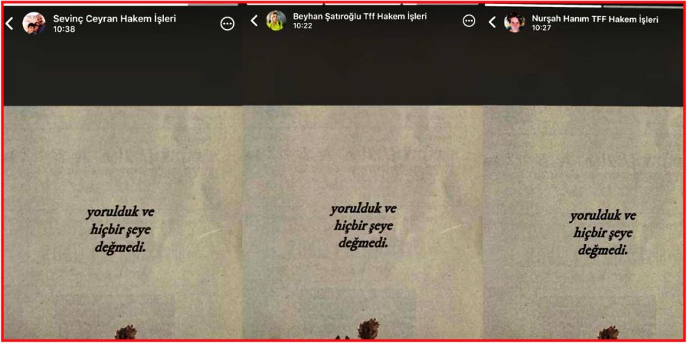 Türkiye Futbol Federasyonu (TFF) Merkez Hakem Kurulu’ndaki (MHK) kadın görevliler, sosyal medyadan aynı anda yaptıkları paylaşımlarla gündem oldu. Üst üste 3 MHK kadın çalışanının tepki paylaşımı "TFF'de isyan çıktı" şeklinde yorumlandı.