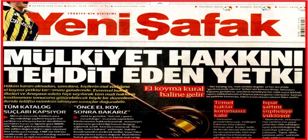 Yeni Şafak gazetesi, mal varlıklarına el koyma yetkisinin hâkim kararı olmaksızın savcılara verilmesini öngören düzenlemeye tepki gösterdi.