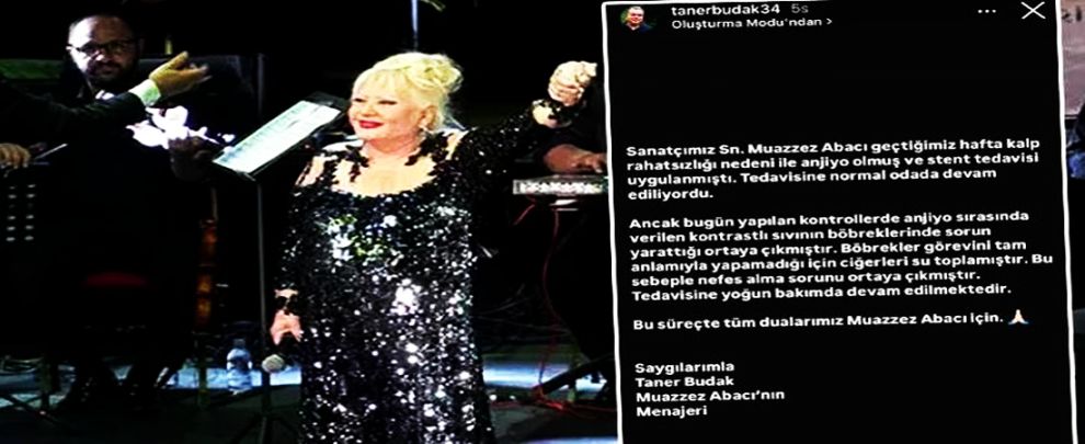 ''Sanatçımız Sayın Muazzez Abacı geçen hafta kalp rahatsızlığı nedeni ile anjiyo olmuş ve stent tedavisi uygulanmıştı. Tedavisine normal odada devam ediliyordu. Ancak bugün yapılan kontrollerde anjiyo sırasında verilen kontrastlı sıvının böbreklerinde sorun yarattığı ortaya çıkmıştır."