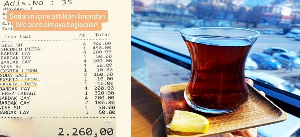 İstanbul Kuzguncuk'ta bulunan bir kafede içtikleri çay ve sodanın yanına dilimlenmiş limon isteyen müşteriler kasada adisyonu görünce şaşkına döndü.