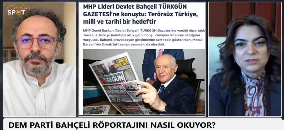 Spot Basın Kooperatifi’nin Youtube kanalında konuşan İmralı'ya giden heyette yer alan DEM Partili Gülistan Kılıç Koçyiğit, "Sayın Öcalan’ın ‘Süreç başarısız olursa MHP içerisinde Bahçeli’ye darbe olur’ gibi bir cümlesi yok" dedi.