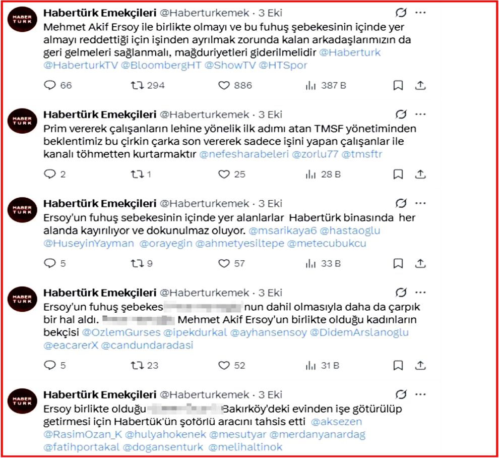 Mehmet Akif Ersoy tutuklandıktan sonra Habertürk'te yaşananlarla ilgili peş peşe paylaşımlar geldi. Bunlardan en dikkat çekeni ise 3 Ekim 2025'te Habertürk Emekçileri adlı hesabın paylaşımları oldu. Ersoy'un çarpık ilişkilerinin hedef alındığı paylaşımlarda korkunç iddialar var.