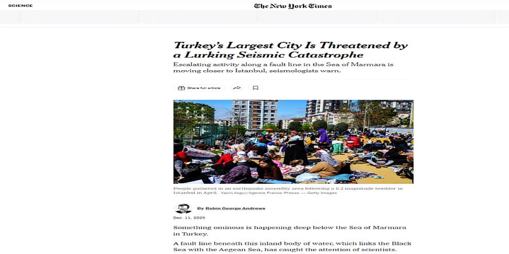 Analizde, Nisan 2025’te İstanbul’da hissedilen 6.2 büyüklüğündeki depremin bu zincirin son halkası olduğu hatırlatıldı. University College London’dan sismolog Stephen Hicks, NYT’ye yaptığı açıklamada, “İstanbul adeta nişan alınmış durumda” ifadelerini kullandı.