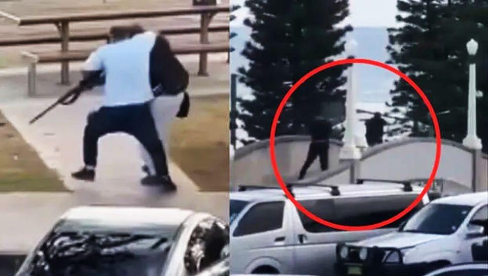 Sosyal medyada paylaşılan ve BBC Verify'ın (Doğrulama Servisi) teyit ettiği bir video, silahlı iki kişinin otoparkın üzerindeki bir köprüden sahile doğru ateş açtığını gösteriyor. Köprü, çocuk parkının 50 metre ötesinde.