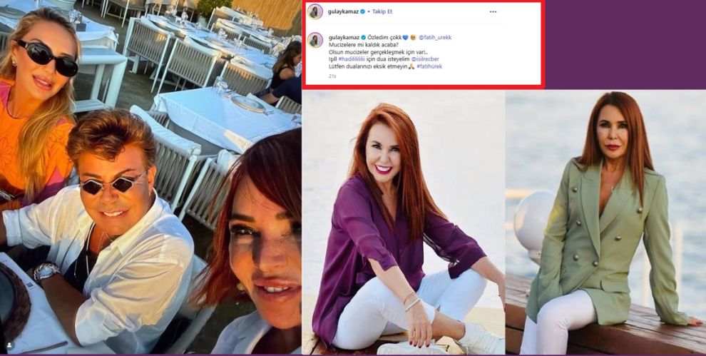 Fatih Ürek'in yoğun bakımdaki yaşam mücadelesi sürerken dostu Gülay Kamaz eski bir fotoğrafı sosyal medyada "Çok özledim. Mucizelere mi kaldık acaba? Olsun mucizeler gerçekleşmek için var! Lütfen dualarınızı eksik etmeyin" notuyla duygulandırdı.