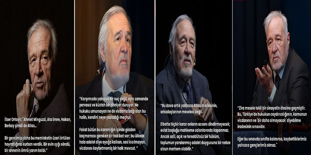Ortaylı, Atlas'ın ölümünün tekil bir cinayet olarak görülemeyeceğini belirterek, "Bu, Türkiye'de hukukun caydırıcılığının, kamunun vicdanının ve 'bir daha olmayacak' diyebilme iradesinin sınavıdır" dedi ve aksi halde kayıpların artacağı uyarısında bulundu.