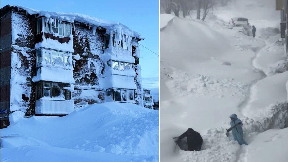 Rusya Acil Durumlar Bakanlığından yapılan açıklamada, kurtarma ekiplerinin karla mücadele ettiği ve kar altında kalan evlerdeki sakinlere ulaşmaya çalıştığı aktarıldı.