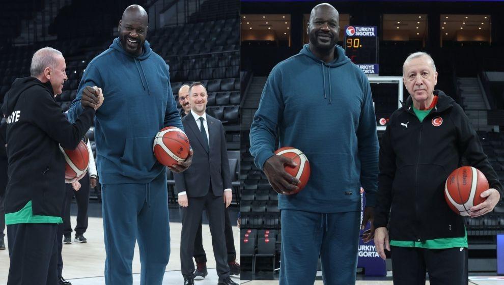 Cumhurbaşkanı Recep Tayyip Erdoğan, NBA'in efsane yıldızlarından Shaquille O'Neal ile bir araya geldi.