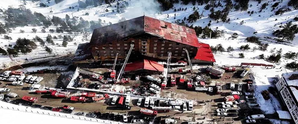 Türkiye'de, geçen yıl 21 Ocak'ta, Bolu'nun ünlü kayak merkezi Kartalkaya'da tüm Türkiye'yi yasa boğan bir facia yaşandı. 12 katlı Grand Kartal Oteli'nin 4. katındaki mutfak bölümünde ızgaradan çıkan yangın, kısa sürede katlara yayıldı. Yangından kurtulanlar, otelin yangın alarmının devreye girmediğini, yangın merdiveni ve duman dedektörü bulunmadığını anlattı. Bazı kişiler odalarının camlarından, aşağı çarşaf ve battaniyeleri birbirine bağlayarak otelden çıkabildi. Sabaha karşı meydana gelen faciada 34'ü çocuk, 78 kişi hayatını kaybetti, 133 kişi yaralandı.