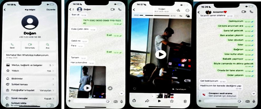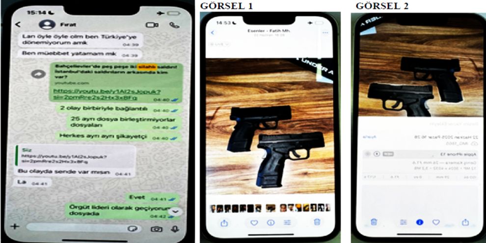 E.Ç'nin telefonunda yapılan incelemede de silahla verdiği pozlar ve saldırıda kullanılmış tabancaların fotoğrafları tespit edildi. Annesiyle arasında geçen mesajlarda, kendisini eve çağıran babasına tehditle yanıt verdiği görüldü.