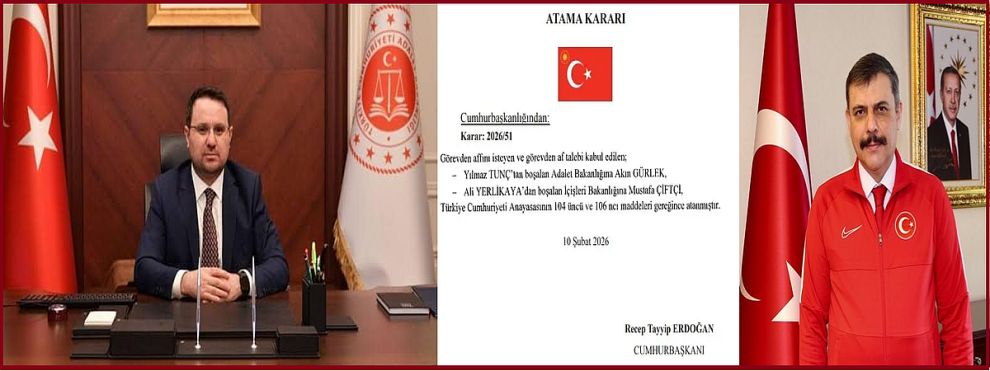 Cumhurbaşkanı Recep tayyip Erdoğan, Adalet Bakanı Yılmaz Tunç ve İçişleri Bakanı Ali Yerlikaya'yı "af talepleri"yle görevden aldı. İstanbul Cumhuriyet Başsavcısı Akın Gürlek, Adalet Bakanı olarak atandı. Erzudurm Valisi Mustafa Çiftçi ise İçişleri Bakanı oldu. Kararda Tunç ve Yerlikaya'nın görevden affını istediği belirtildi.