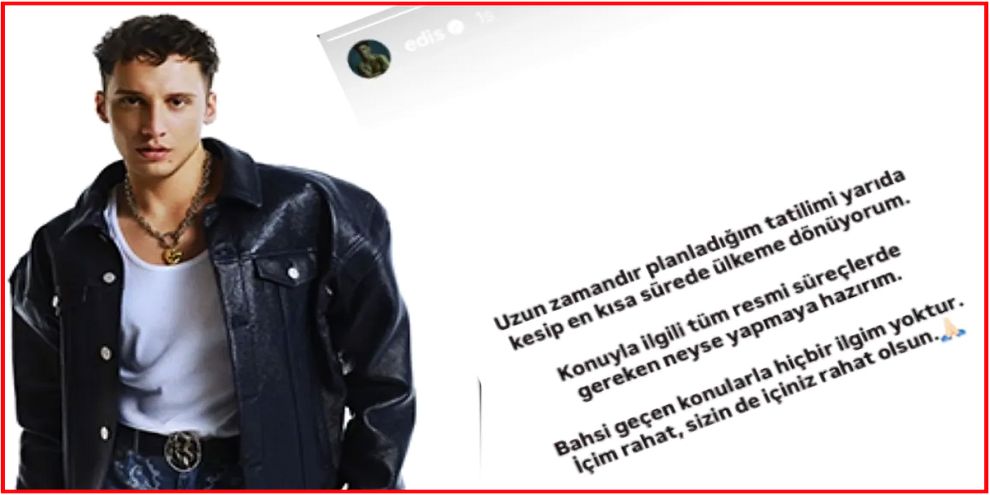 Ünlülere yönelik yürütülen uyuşturucu soruşturması kapsamında hakkında yakalama kararı çıkarılan ünlü şarkıcı Edis'ten ilk açıklama geldi. sosyal medya hesabından paylaşım yapan ünlü şarkıcı, "Ülkeme dönüyorum... İçim rahat, sizin de içiniz rahat olsun" dedi.