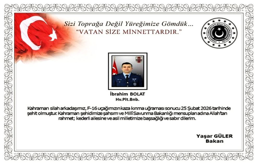 MSB, sabah saatlerinde kaza kırıma uğrayan F-16'da hayatını kaybeden pilotun, Hava Pilot Binbaşı İbrahim Polat olduğunu duyurdu.