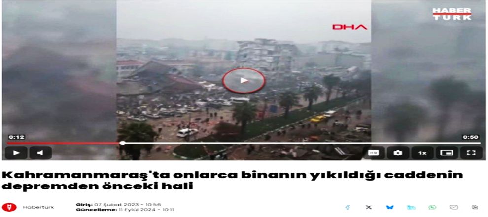 YouTube'da yayın kaydına baktım, gerçekten de Tel Aviv yerine Kahramanmaraş arşiv görüntüsü verilmiş ekrana. Yayın kaydı (13-14. dakikalar): https://t.co/py2SANkvqL Bu da Kahramanmaraş'taki yıkımın görüntüsü: https://t.co/B9W1iP4voO https://t.co/y9LuonnR2n