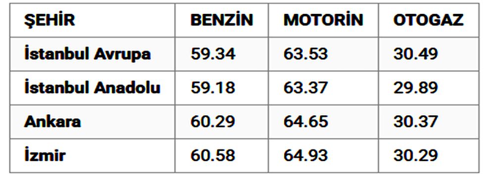 6 MART GÜNCEL AKARYAKIT FİYATLARI