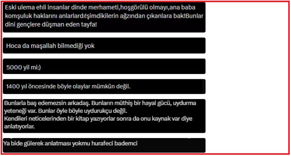 "Cübbeli Ahmet"in bu açıklamaları, sosyal medyada kısa sürede geniş yankı buldu ve birçok kullanıcı tarafından paylaşıldı. Kimileri Ünlü'ye tepki gösterdi. Gelen yorumlardan bazıları şöyle: