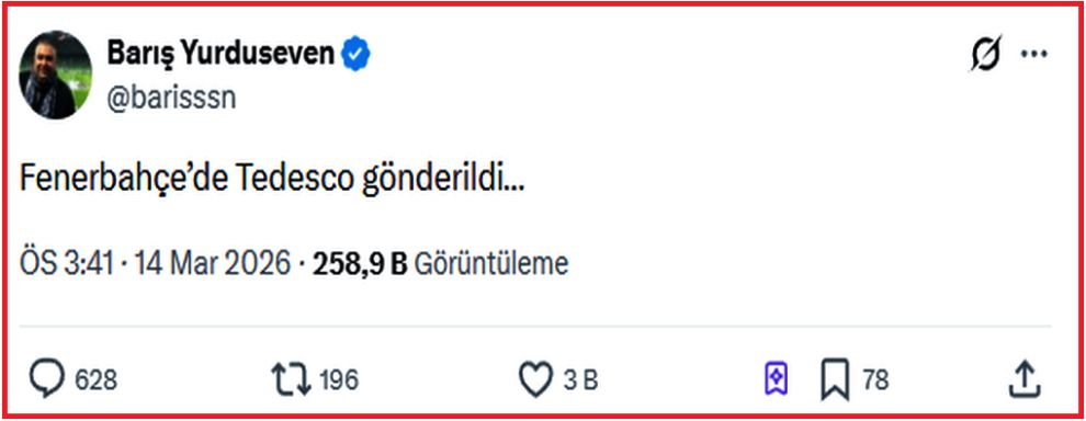 Fenerbahçe'de Karagümrük yenilgisinin şoku sürüyor! Sarı-lacivertliler, sahadan 2-0 mağlup ayrılarak zirve yarışında ağır darbe aldı. Maçın hemen ardından kulüpte acil durum zirvesi yapılırken, Başkan Sadettin Saran'ın teknik direktör Domenico Tedesco ve sportif direktör Devin Özek ile kritik görüşmesi gündemin merkezine oturdu.Gazeteci Barış Yurduseven, sosyal medya hesabından çarpıcı bir iddia ortaya attı: Fenerbahçe'nin Domenico Tedesco ile yollarını ayırdığı yönünde bilgi paylaştı.