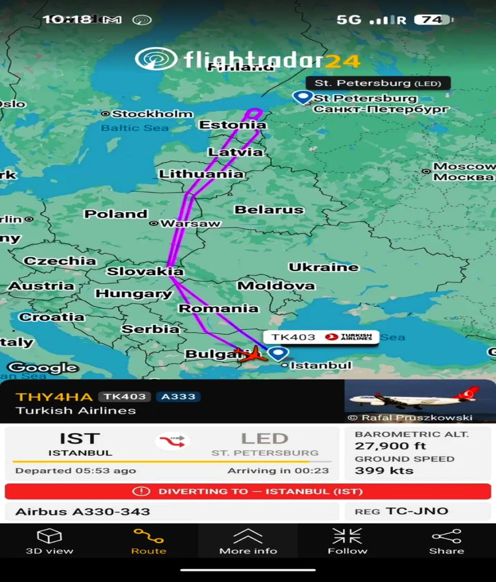 Devam eden Rusya-Ukrayna savaşında son günlerde St. Petersburg’da peş peşe yaşanan drone saldırıları, bölgedeki hava sahasının sık sık kapatılmasına neden oluyor. Bu gelişmeler birçok uçuşta iptal ve yön değişikliğini beraberinde getirirken, TK403 seferi de geri dönmek zorunda kalan uçuşlar arasına girdi.