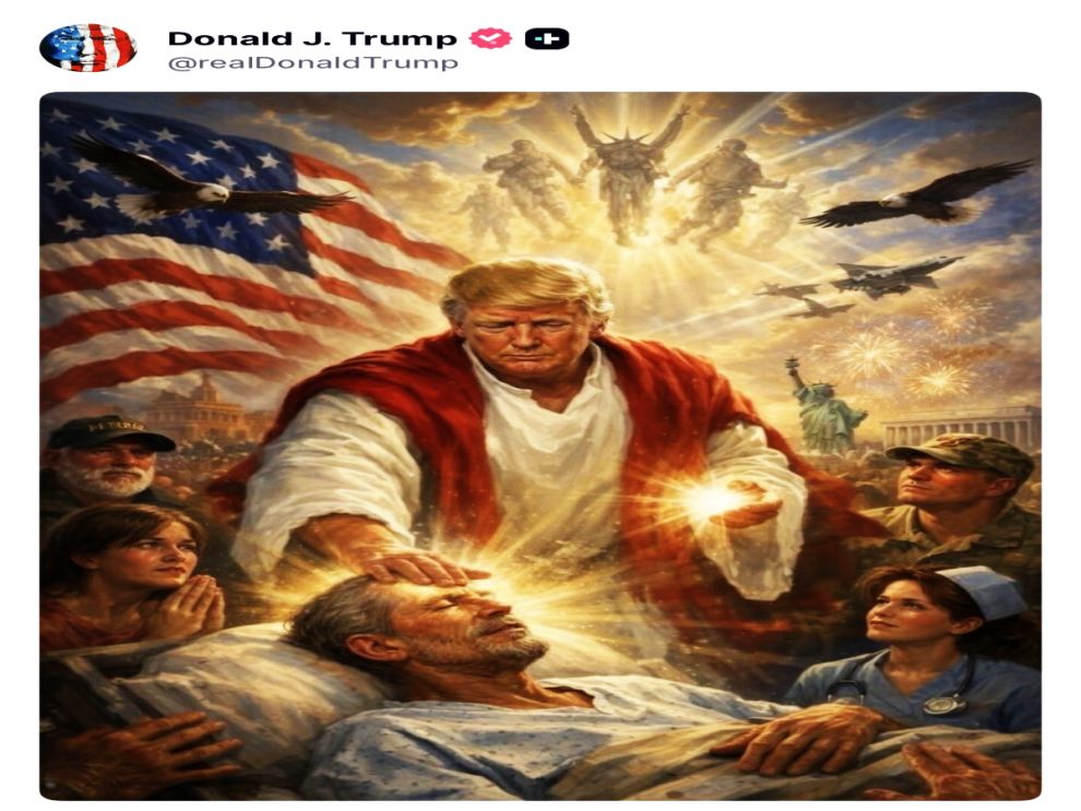 Trump’ın açıklamalarının ardından sosyal medyada paylaştığı bir görsel de tartışma yarattı. Yapay zekâ ile oluşturulan görselde Trump’ın kendisini Hz. İsa’ya benzer şekilde tasvir ettiği görüldü.