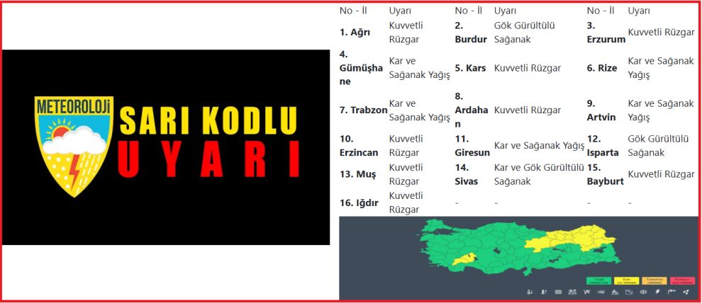 Meteoroloji uzmanları sağanak, fırtına ve kar etkisi altında olacak 16 il için sarı kodla uyarı yaparak vatandaşların olası risklere karşı hazırlıklı olmasını istedi.