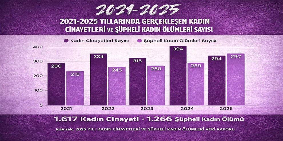 "Kadın Cinayetlerini Durduracağız Platformu" verilerine göre, tüm önlemlere ve yasal düzenlemelere rağmen 2025 yılında 294 kadın cinayeti işlenmiş, 297 kadın ölümü ise kayıtlara "şüpheli" olarak geçmiştir.