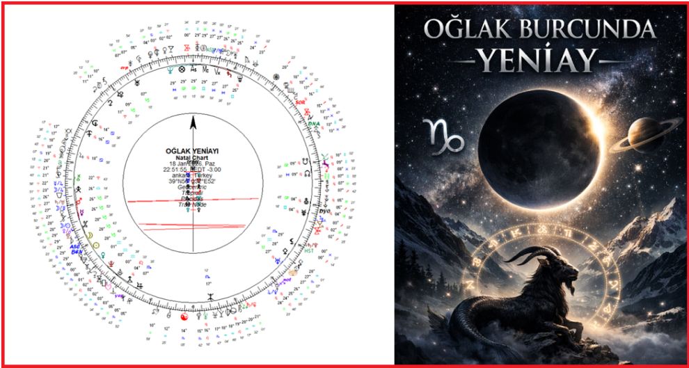Türkiye Ankara koordinatlarına göre 18 Ocak 2026 saat 22:51’de Oğlak burcunun 28°’sinde bir yeniay deneyimleyeceğiz.